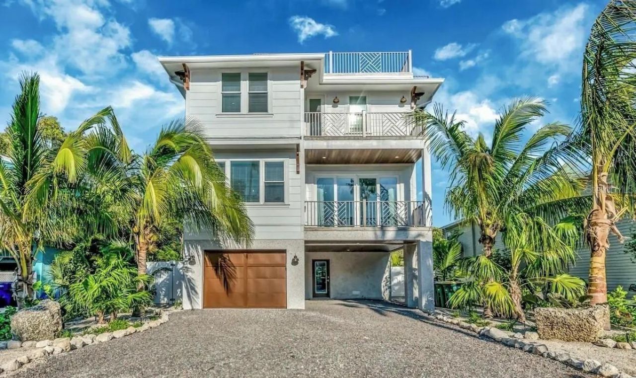 Experience the ultimate coastal lifestyle in this exquisite, newly constructed 7-bedroom house located just steps from the pristine white- sands of Anna Maria Island. Designed as a premier short-term vacation rental, allowing nightly rentals, this incredible home offers a turn-key opportunity for savvy investors looking to capitalize on one of Florida's most lucrative markets.Boasting seven spacious bedrooms and seven-and-a-half baths, this luxurious retreat is engineered for high-occupancy success and grand entertaining. The open-concept, chef-inspired kitchen-a must-have for large groups-features top-tier appliances, custom cabinetry, and a massive island perfect for guest gatherings.This home has expansive rooftop deck, offering a rare best of both worlds perspective with panoramic 360-degree views. Guests can soak in the vibrant turquoise waters and world-class sunsets over the Gulf of Mexico to the west, then turn to watch the sunrise or passing boats across the sparkling Sarasota Bay to the east.This property is perfectly positioned to accommodate the high-demand large group segment. The layout is enhanced by proven five-star amenities, including a private heated pool and spa, multiple covered balconies, and high-end designer finishes throughout.Situated just moments from the beach and the free island trolley, this home ensures a seamless experience for guests seeking a car-free vacation. Outside, your private oasis awaits with a custom-designed pool area that acts as a central hub for relaxation, making it a true showstopper in the competitive rental market. Whether you are looking for a personal tropical escape or a high-performing income generator, this property delivers on every front.